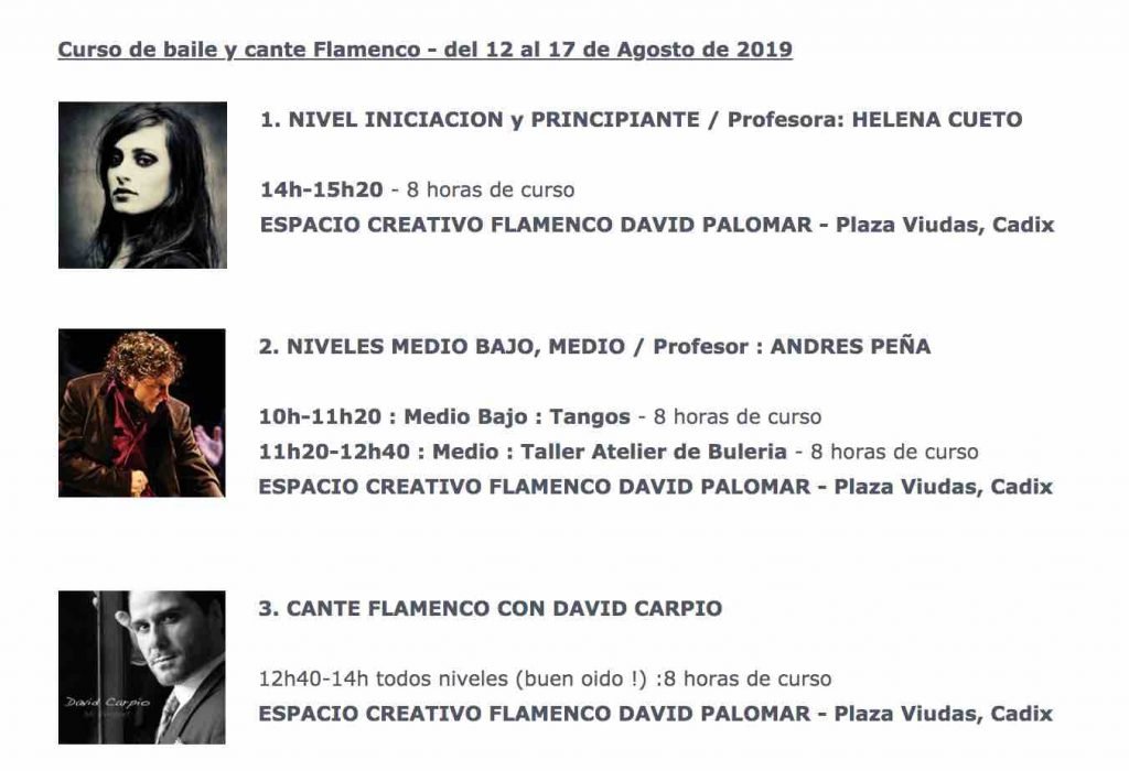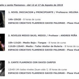 En el verano de 2019, exactamente entre el 12 y 17 de agosto, Lib’Arte estará presenten en el Espacio Creativo Flamenco David Palomar; y los cursos serán de cante, con David Carpio; y baile, con Andrés Peña y Helena Cueto.